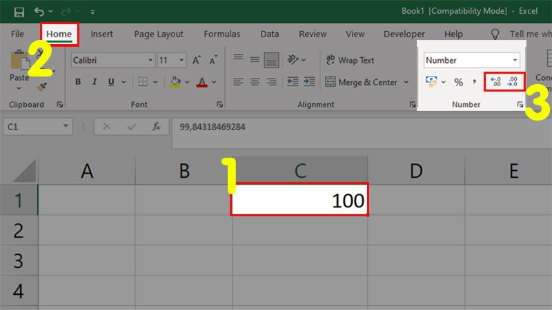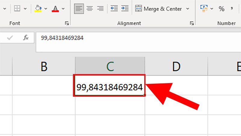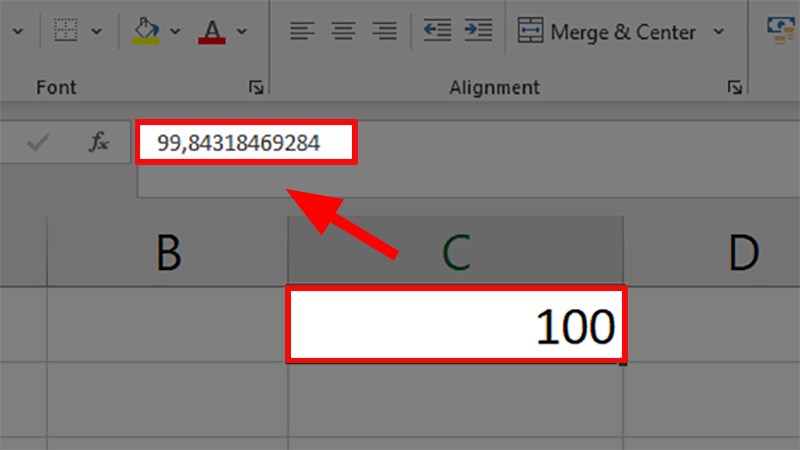 Dưới đây là một ví dụ về số 99,84318469284 được Excel làm tròn lên thành 100. Nếu bạn muốn giữ nguyên số 99,84318469284 và không muốn chuyển đổi nó, bạn có thể làm như sau: