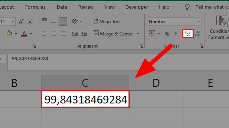 - Increase Decimal: tăng số thập phân phía sau dấu phẩy.
