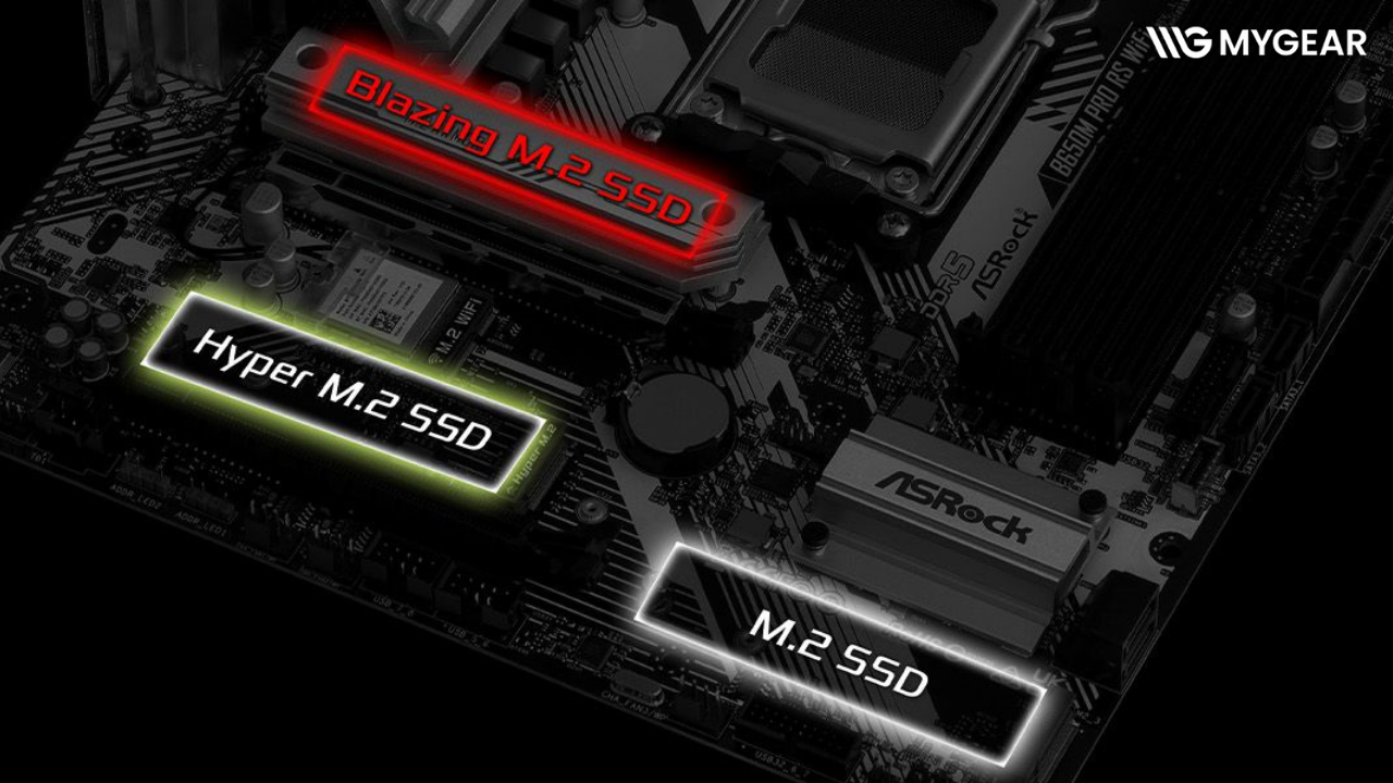 Bo mạch chủ ASROCK B650 được trang bị 3 khe cắm M.2 với tốc độ PCIe 5.0, mang lại cho người dùng khả năng cài đặt các ổ SSD nhanh nhất hiện nay. Điều này không chỉ cải thiện tốc độ truy xuất dữ liệu mà còn cho phép người dùng trải nghiệm tốc độ khởi động máy và tải ứng dụng gần như ngay lập tức.