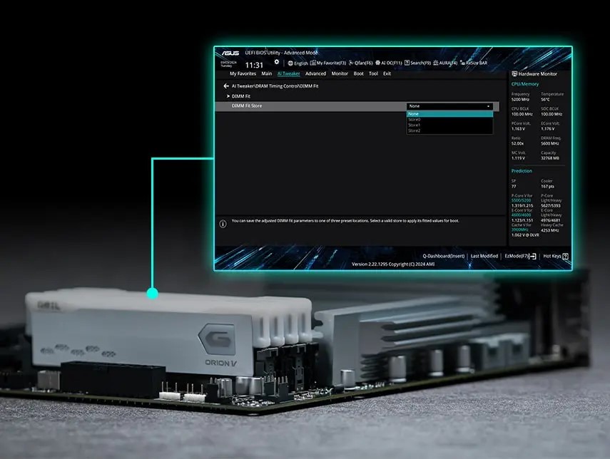 DIMM Fit là một tính năng BIOS độc quyền của ASUS, giúp phân tích chính xác các mô-đun bộ nhớ riêng lẻ để tối ưu hóa hiệu suất và xác định các vấn đề tiềm ẩn.