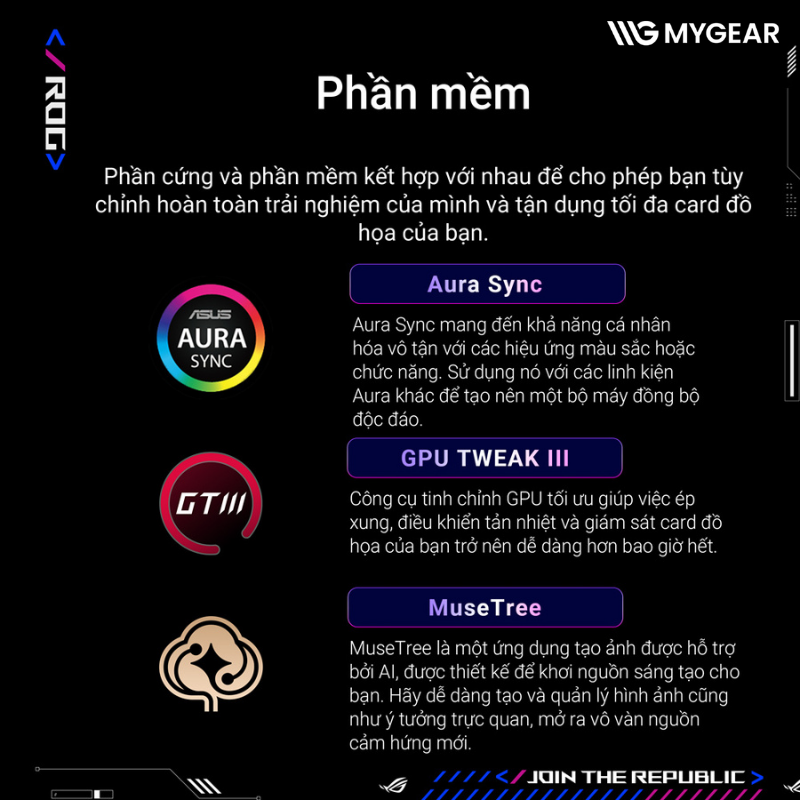 Đi kèm với ASUS ROG Strix Astral GeForce RTX 5080 là phần mềm Armory Crate cho phép người dùng tùy chỉnh các cài đặt và theo dõi hiệu suất của card màn hình. Từ đó, người dùng có thể dễ dàng tối ưu hóa trải nghiệm chơi game của mình và quản lý nhiệt độ, tốc độ quạt một cách hiệu quả.