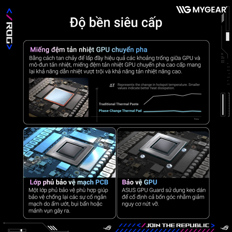 Các tính năng tản nhiệt thông minh giúp card ASUS ROG Strix Astral GeForce RTX 5080 hoạt động ổn định và bền bỉ hơn trong thời gian dài. Hệ thống quạt thiết kế đặc biệt không chỉ giảm tiếng ồn mà còn tối ưu hóa luồng gió, đảm bảo nhiệt độ luôn ở mức thấp ngay cả khi hoạt động với hiệu suất cao. Thêm vào đó, đèn RGB có thể tùy chỉnh giúp người dùng dễ dàng cá nhân hóa phong cách của dàn máy tính của mình.