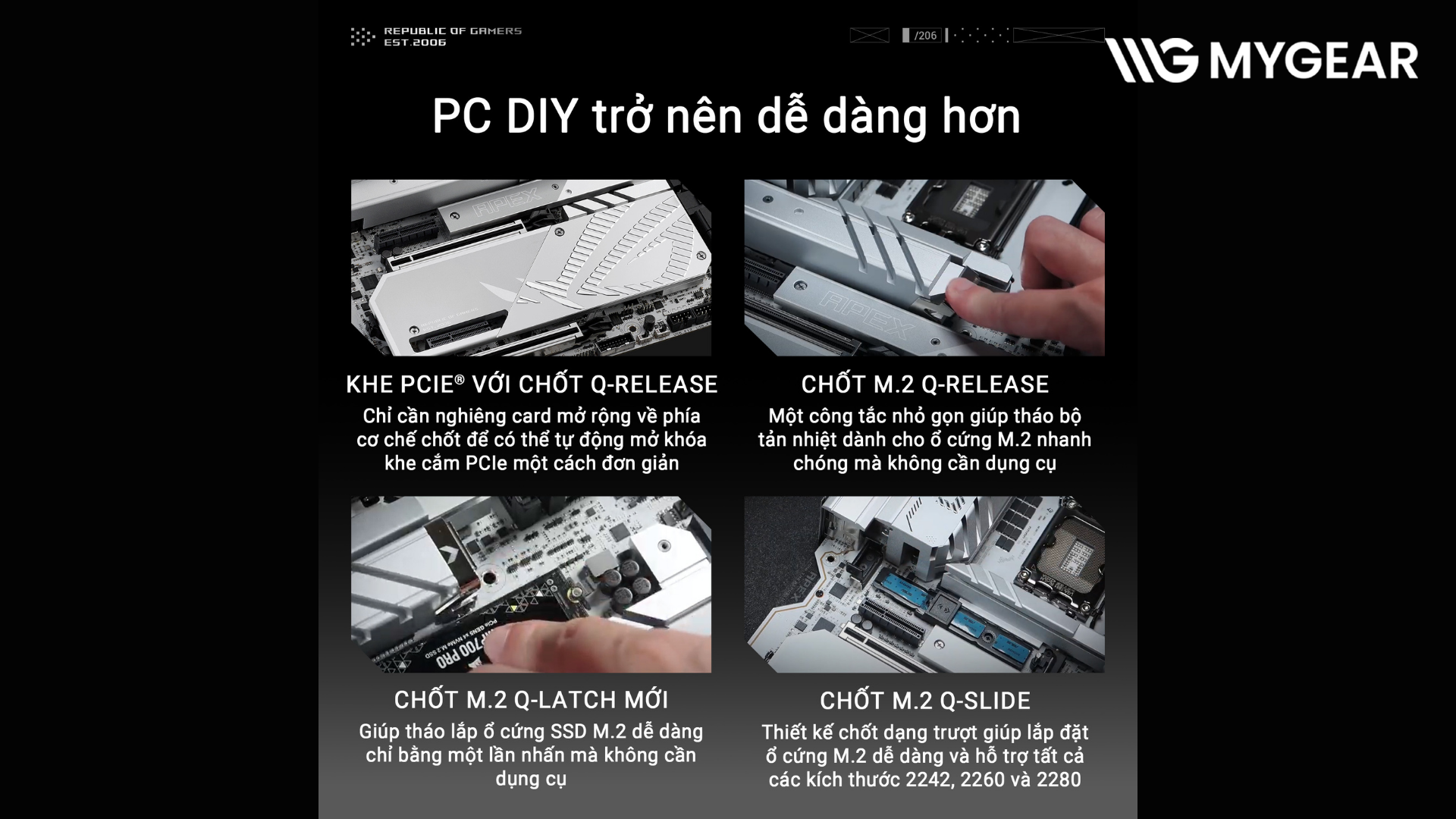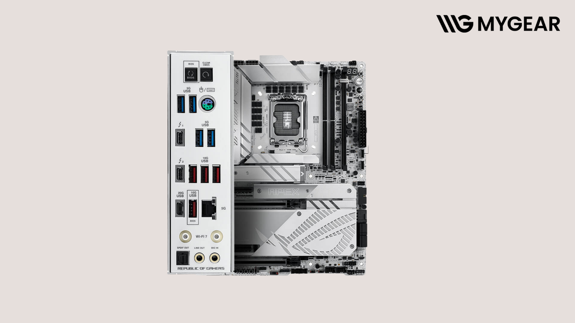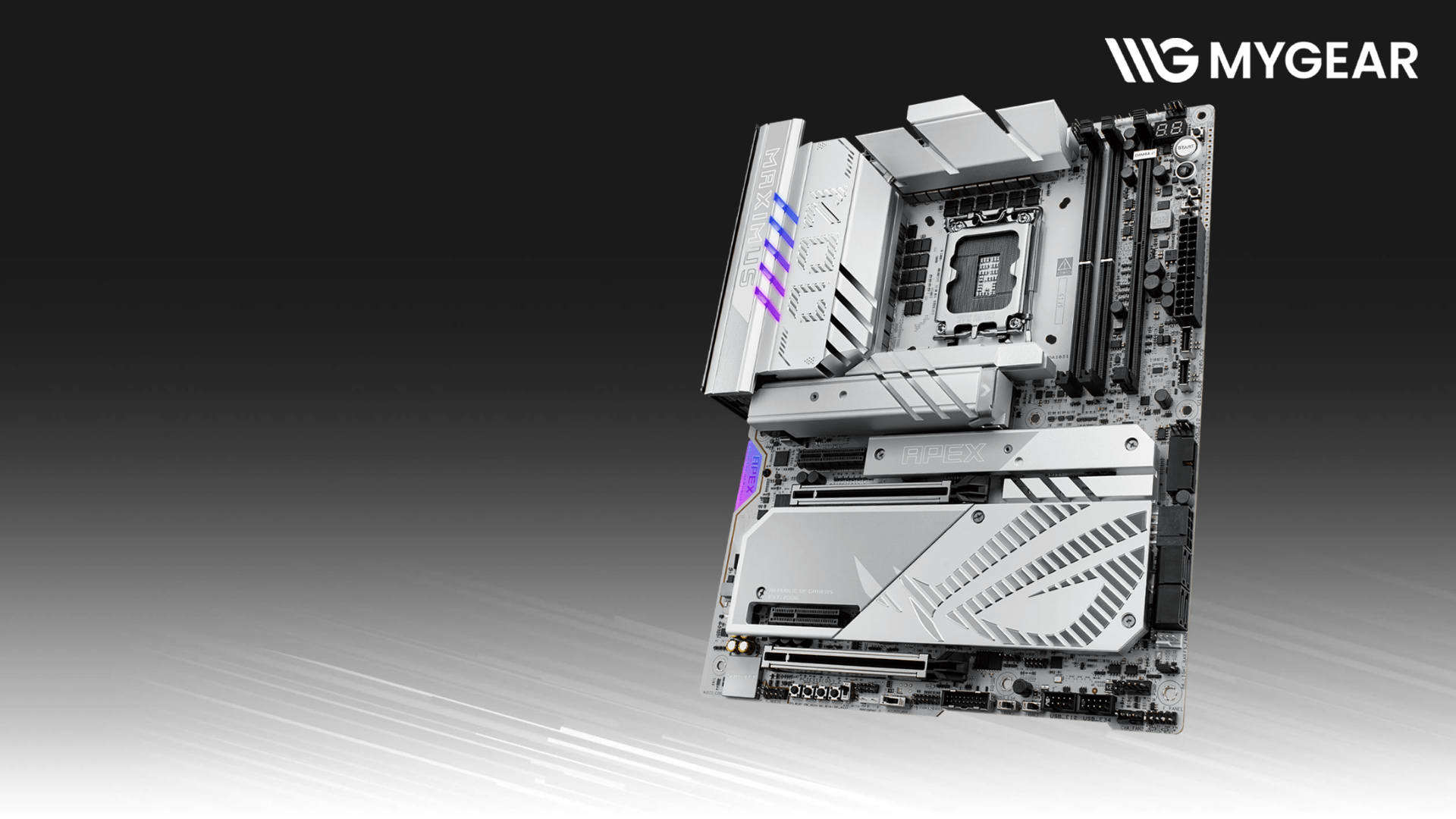 Hiện tại, bo mạch chủ ASUS ROG MAXIMUS Z890 APEX chính hãng đang có mặt tại MYGEAR. Khi mua tại bo mạch chủ Intel, khách hàng có thể kết hợp cùng CPU Intel Core™ Ultra Series 2, RAM DDR5 bus cao, SSD PCIe 5.0, card đồ họa RTX flagship và tản nhiệt cao cấp để xây dựng cấu hình hoàn chỉnh, được hỗ trợ kỹ thuật chuyên sâu.