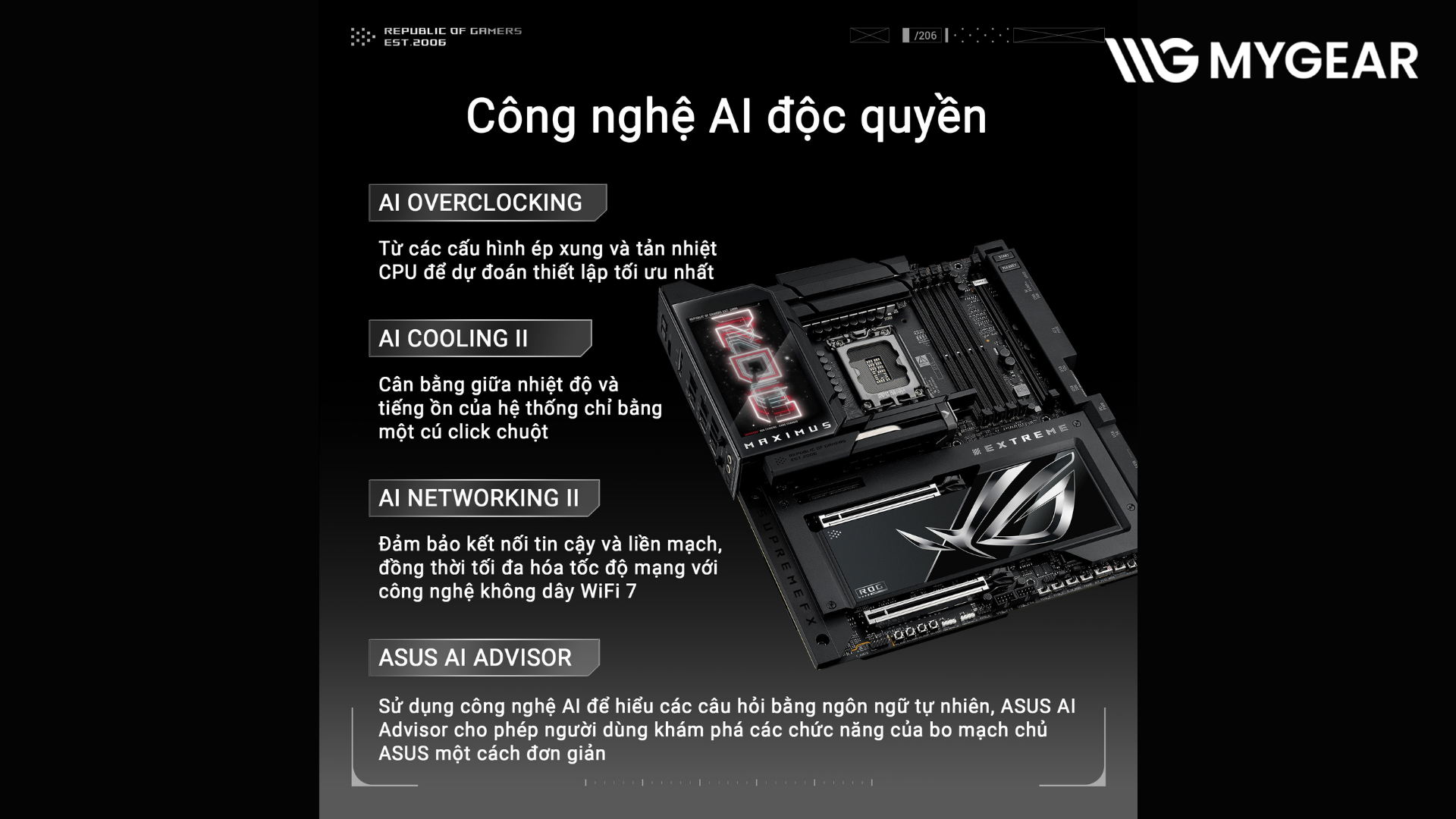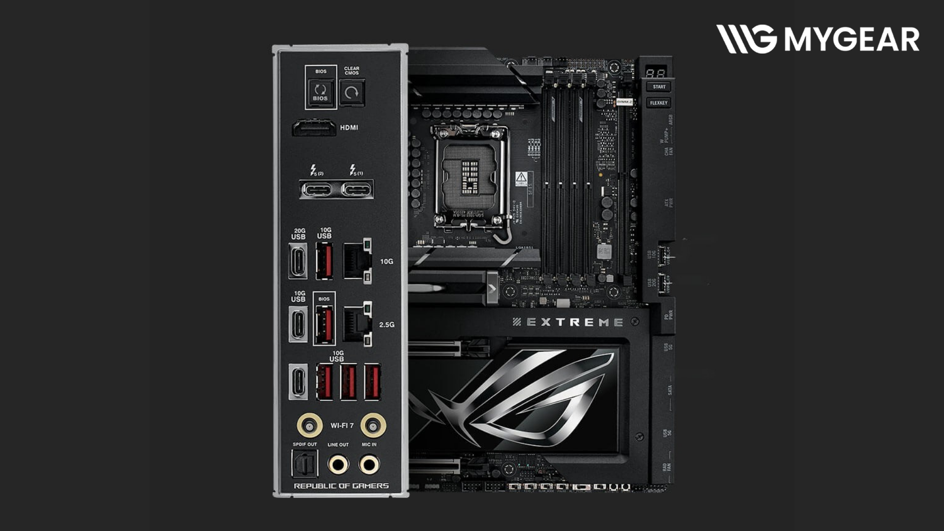 Hiện tại, mainboard ASUS ROG MAXIMUS Z890 EXTREME chính hãng đang có mặt tại MYGEAR. Khi mua tại bo mạch chủ Intel, khách hàng có thể kết hợp cùng CPU Intel Core™ Ultra, RAM DDR5 cao cấp, SSD PCIe 5.0, card màn hình RTX flagship và hệ thống tản nhiệt nước custom để xây dựng cấu hình đỉnh cao nhất.