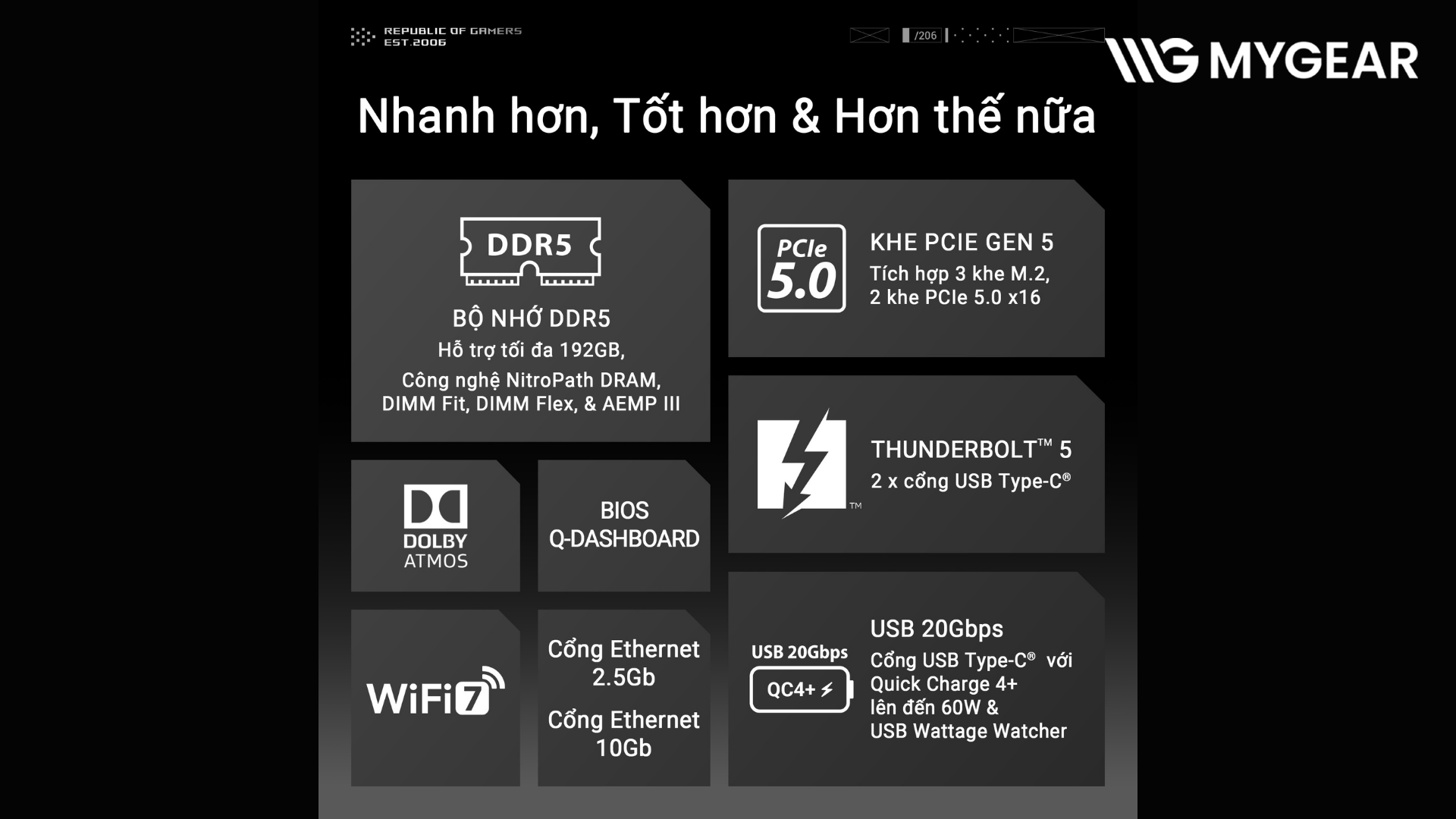 | USB | 2x Thunderbolt™ 5, 1x USB 20Gbps, 7x USB 10Gbps (Bảng phía sau) |