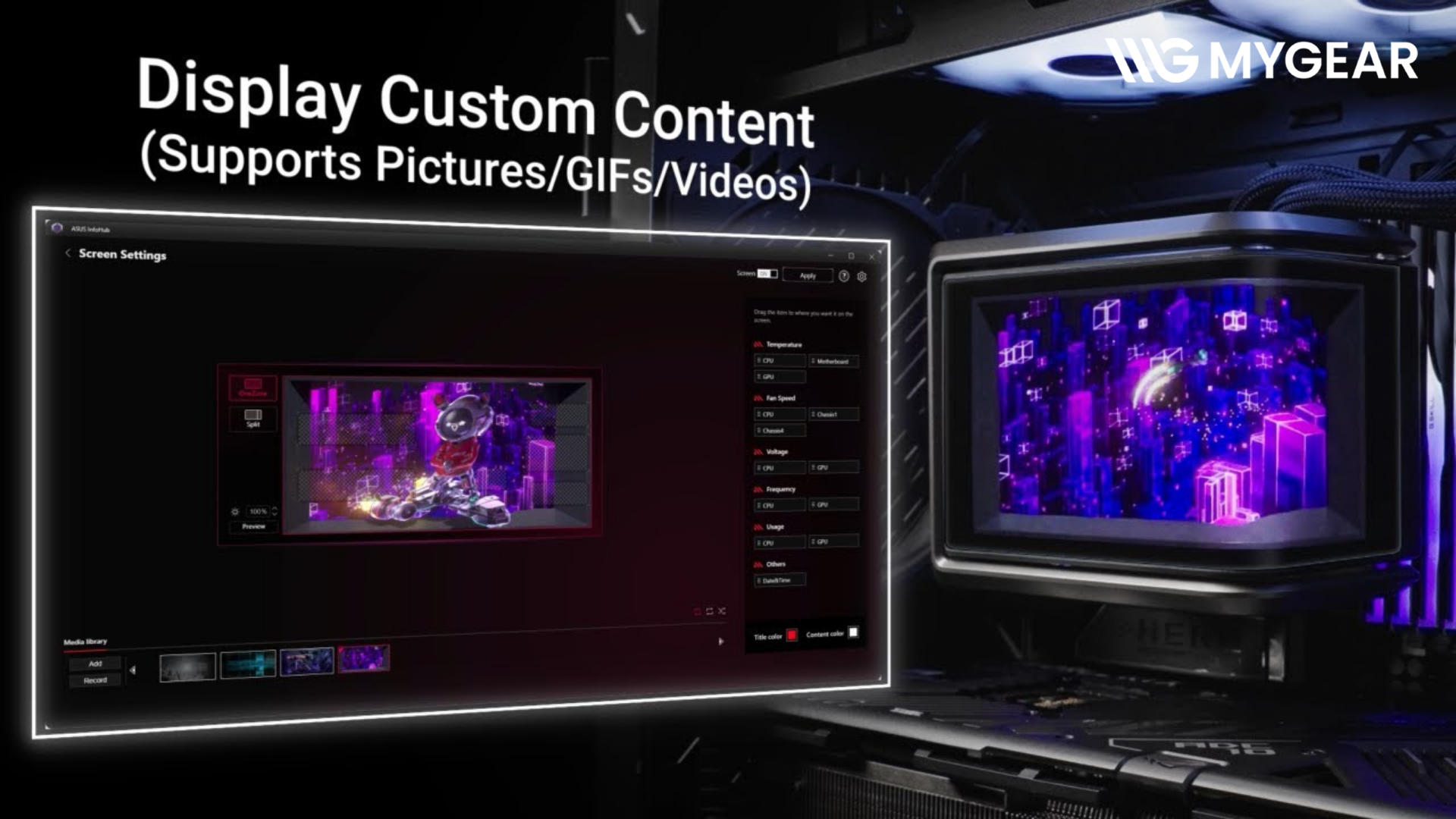 Tản nhiệt ASUS cao cấp ROG Ryuo IV SLC 360 ARGB hỗ trợ Aura Sync, cho phép đồng bộ hiệu ứng RGB với các linh kiện khác như mainboard, RAM hay VGA. Ngoài ra, phần mềm ASUS InfoHub giúp người dùng quản lý và tùy chỉnh hiển thị trên màn hình AMOLED một cách trực quan. Sự kết hợp giữa phần cứng và phần mềm mang lại trải nghiệm sử dụng cao cấp và tiện lợi.