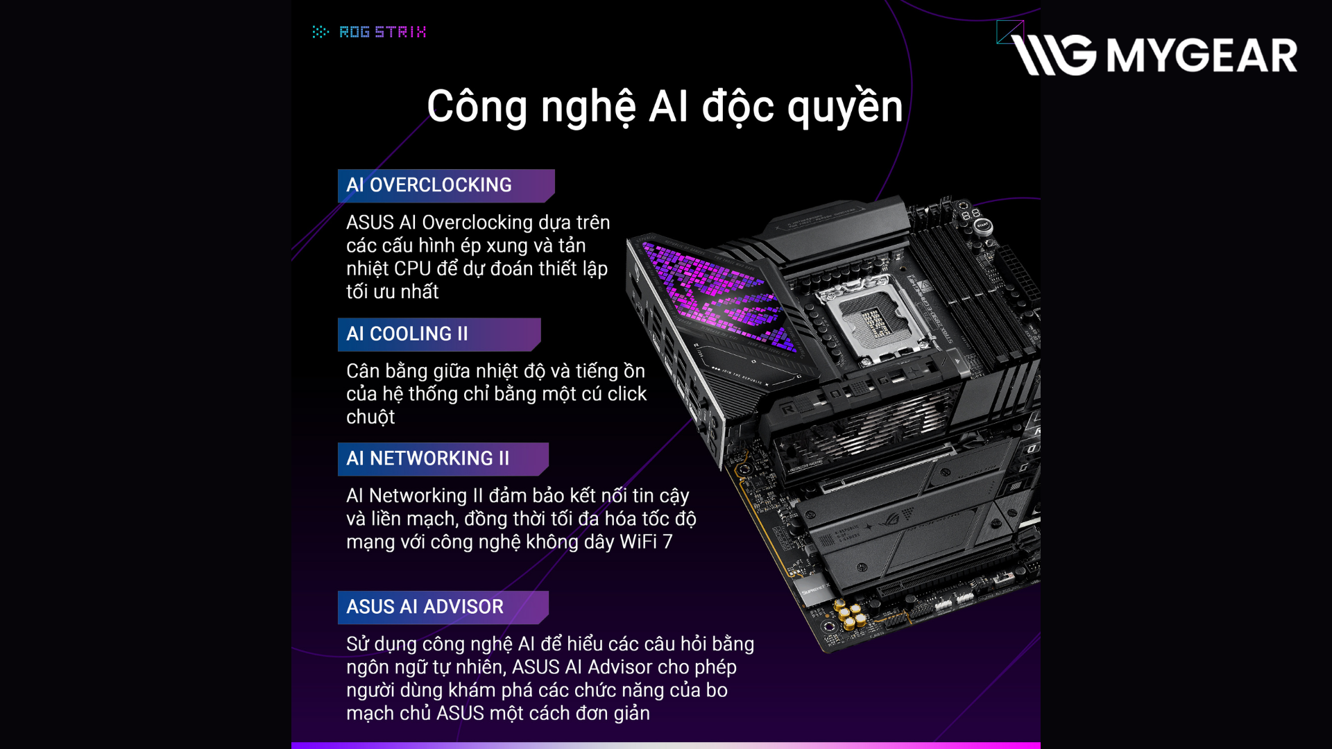 Hiện tại, bo mạch chủ ASUS ROG STRIX Z890-E GAMING chính hãng đang có mặt tại MYGEAR. Khi mua tại bo mạch chủ Intel, khách hàng có thể kết hợp cùng CPU Intel Core™ Ultra Series 2, RAM DDR5 bus cao, SSD NVMe PCIe 5.0, card màn hình RTX cao cấp và bộ nguồn công suất lớn để xây dựng cấu hình hoàn chỉnh.