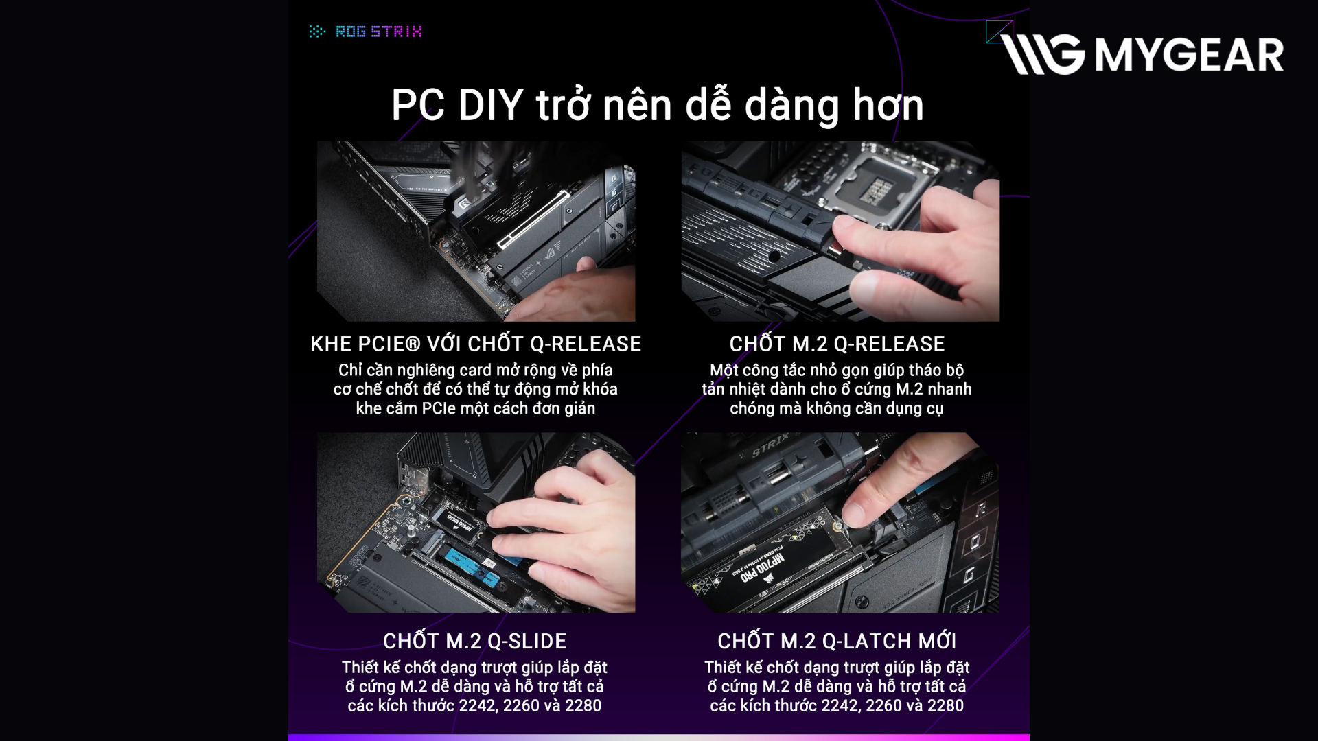 | Khe cắm mở rộng | 1x PCIe 5.0 x16 (CPU), 1x PCIe 4.0 x16 (Chipset) |