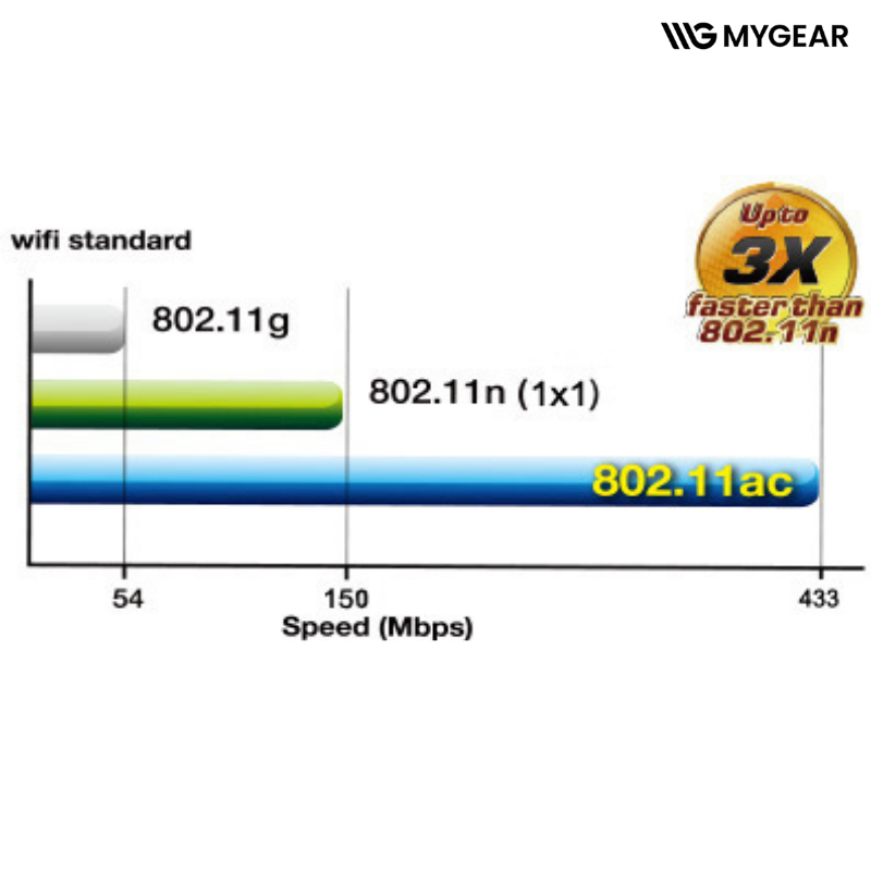 802.11b : tối đa 11 Mbps 802.11g : tối đa 54 Mbps WiFi 4 (802.11n) : tối đa 300 Mbps 802.11ac : tối đa 433 Mbps |