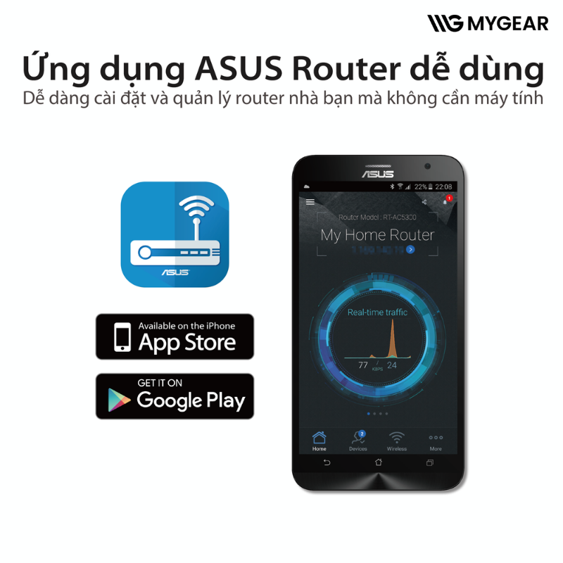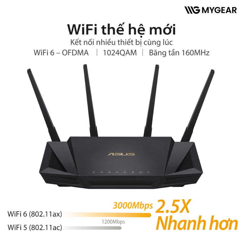 Hãy mua ngay router WiFi 6 ASUS RT-AX58U chính hãng tại MYGEAR để nâng cấp hệ thống mạng gia đình bạn, tận hưởng tốc độ WiFi siêu nhanh, ổn định và an toàn mỗi ngày.
