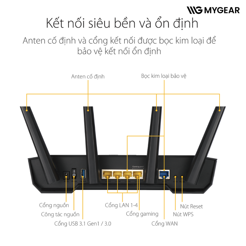 Nếu bạn muốn sở hữu một router gaming ASUS TUF đáng tin cậy, bền bỉ và hiệu năng cao, hãy mua ngay ASUS TUF Gaming AX3000 (Gaming Router) chính hãng tại MYGEAR để nâng tầm trải nghiệm Internet của bạn.