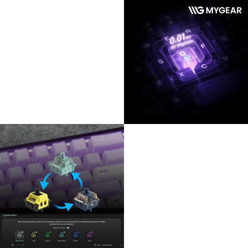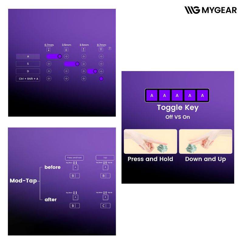 | Tính năng Switch | Rapid Trigger (RT), Dynamic Keystrokes (DKS), Mod-Tap, Toggle Key |
