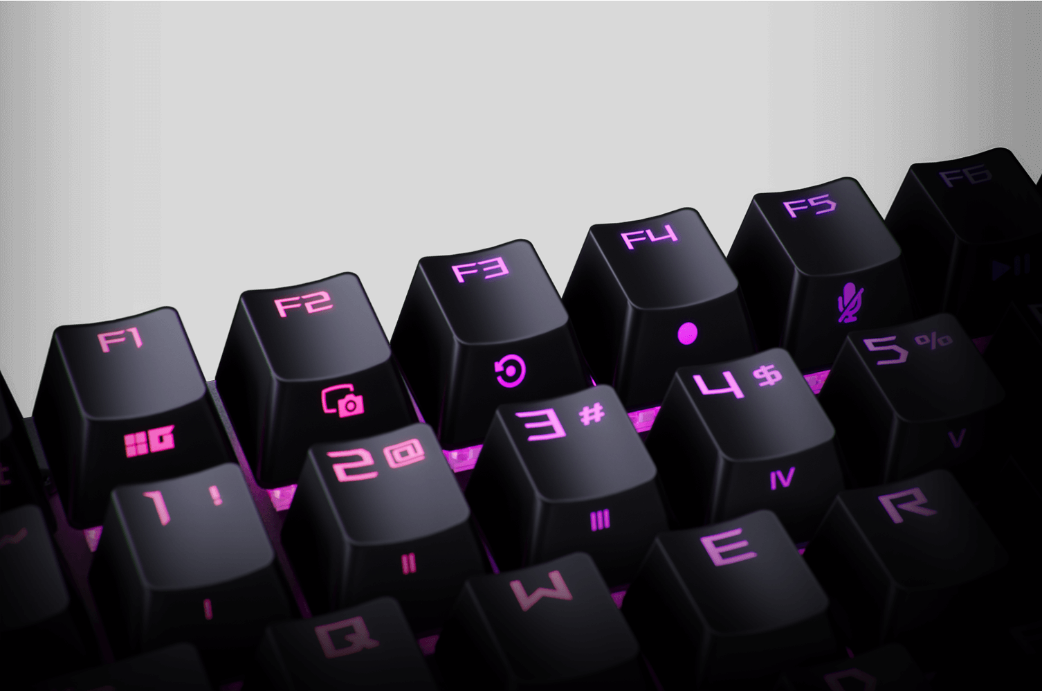 Bàn phím gaming ASUS có layout tối ưu cho game thủ với các phím Ctrl mở rộng, cụm phím media tiện lợi, cùng hàng phím chức năng có thể lập trình thông qua phần mềm Armoury Crate. Bạn có thể thiết lập macro, chuyển đổi profile chơi game chỉ bằng một nút bấm.