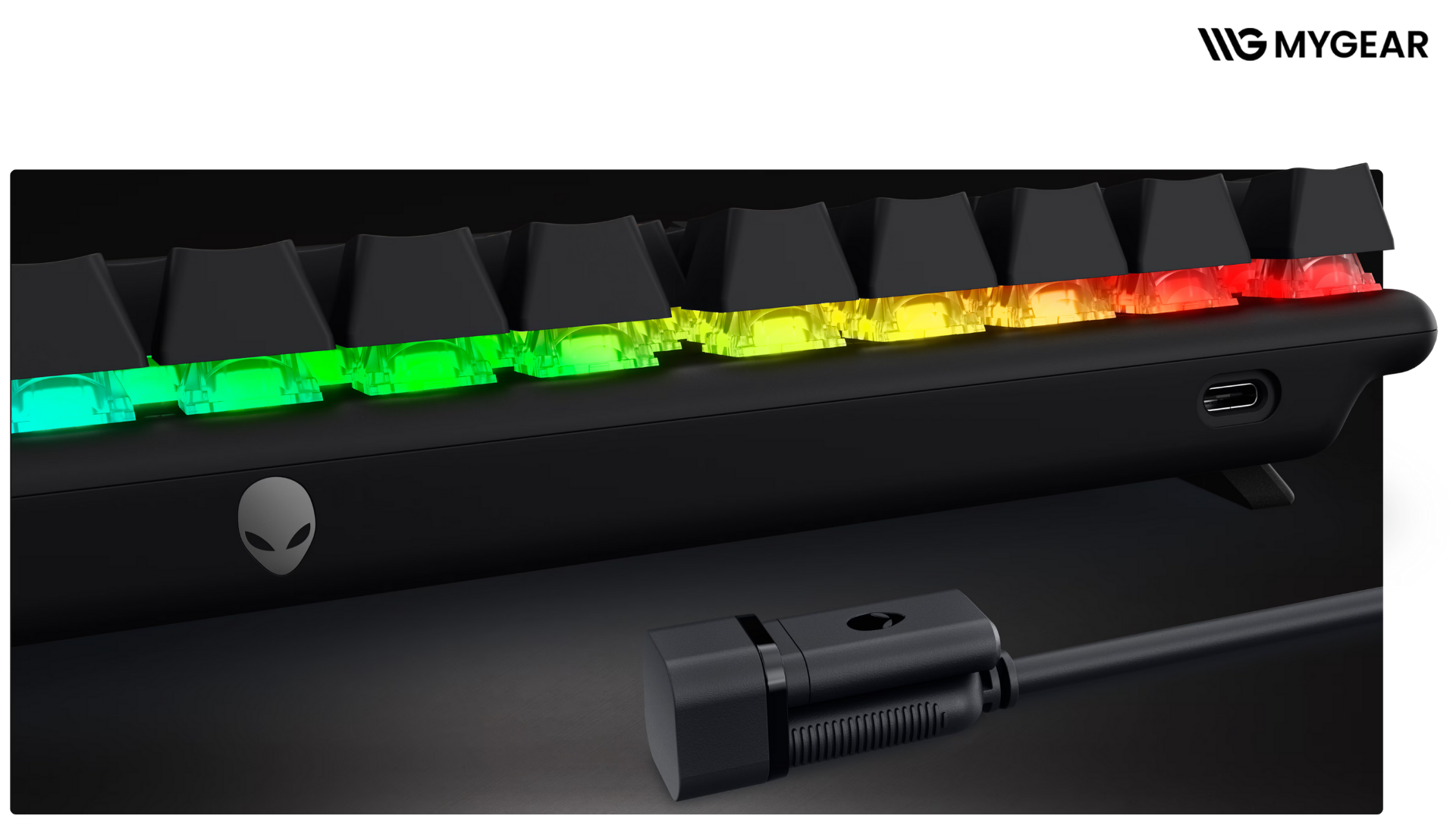 | Tính năng | Cáp USB paracord có thể tháo rời, Bộ mở rộng dongle không dây, Switch cơ học tuyến tính Alienware, Keycap PBT double-shot, Bộ nhớ tích hợp, Anti-ghosting toàn bộ, N-key rollover, Các phím có thể lập trình hoàn toàn, Vô hiệu hóa phím Windows |