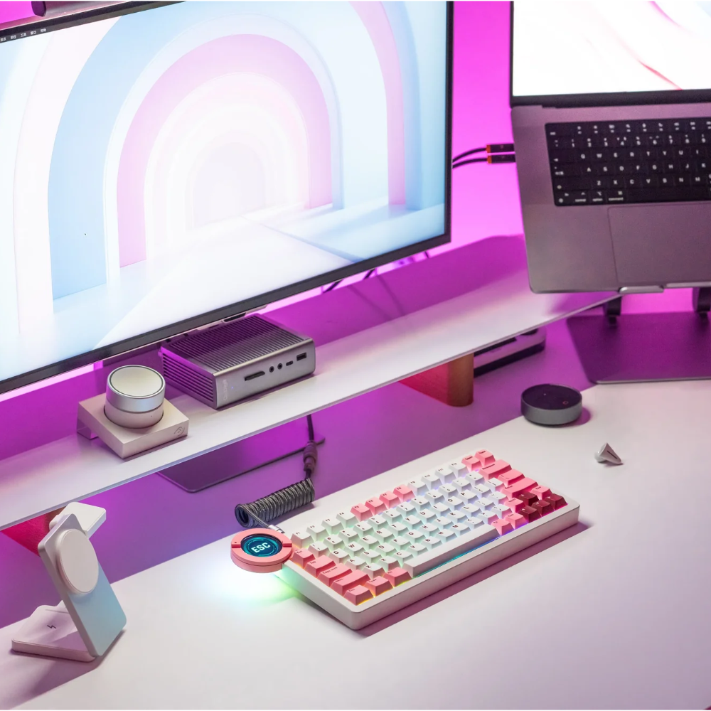 Với hai phiên bản màu sắc Starlight Reaper mạnh mẽ và Pink Blaze đầy cá tính, bàn phím cơ Dry Studio Battleye 75 RT không chỉ hoạt động tốt mà còn là điểm nhấn thẩm mỹ trên bàn làm việc hoặc phòng game. LED RGB tùy chỉnh giúp tạo hiệu ứng ánh sáng sống động, phù hợp với mọi setup gaming.