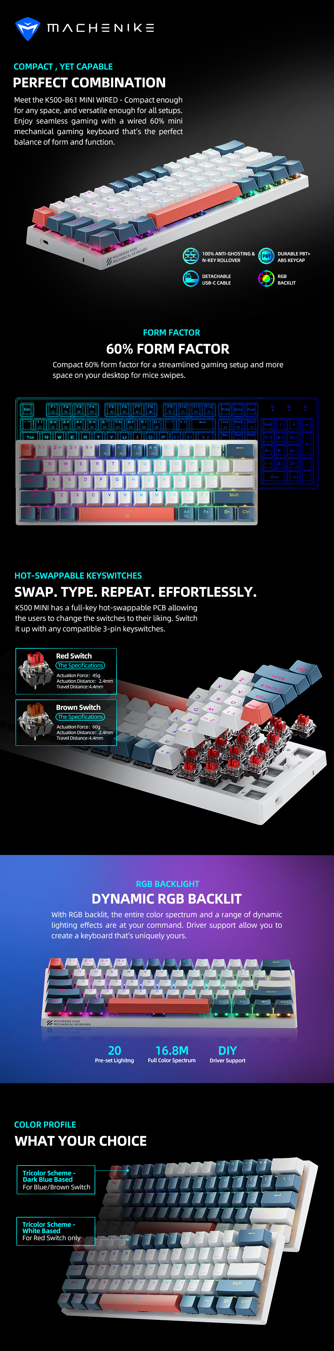 Bàn Phím Cơ Gaming Machenike K500-B61 Wired