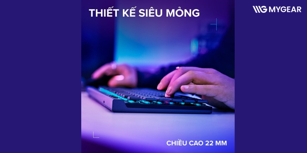 Bàn phím gaming low profile G515 sở hữu chiều cao thấp hơn bàn phím cơ truyền thống, giúp hành trình phím ngắn hơn, tăng tốc độ phản hồi và giảm mỏi cổ tay khi sử dụng lâu dài. Thiết kế không chỉ mang lại trải nghiệm gõ nhẹ, êm mà còn giúp bề mặt bàn làm việc gọn gàng, hiện đại hơn.