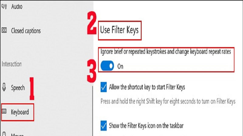 - Filter Keys: Chế độ giới hạn nhấn phím liên tiếp, có thể khiến bàn phím không phản hồi.