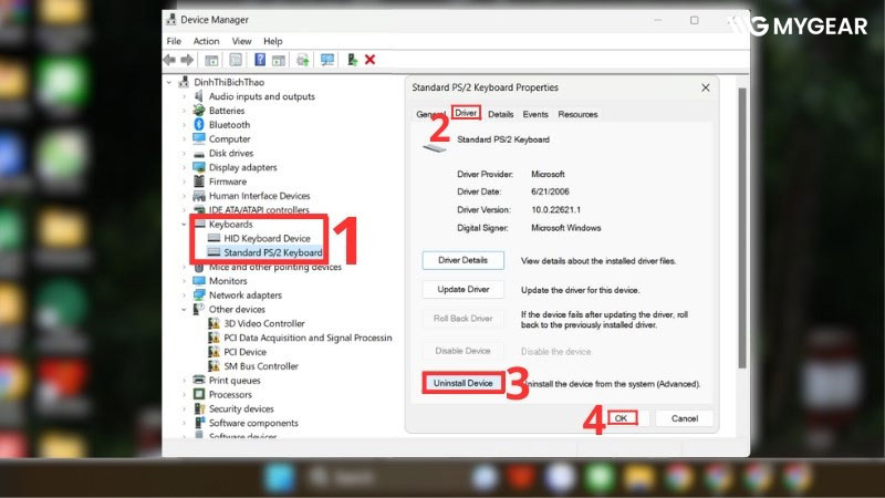 - Mở rộng mục Keyboards → Standard PS/2 Keyboard (hoặc tên tương tự).