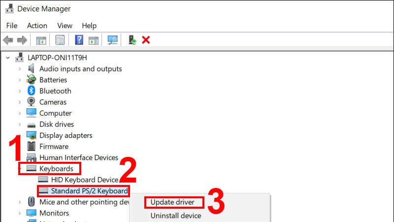 1.1. Cập nhật hoặc cài lại driver bàn phím