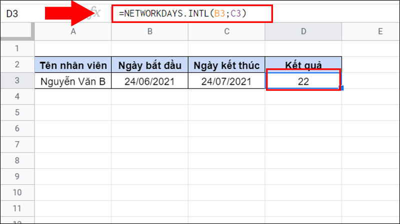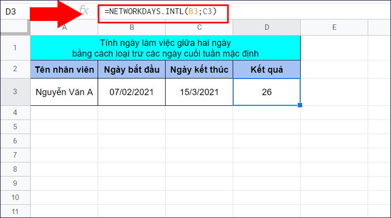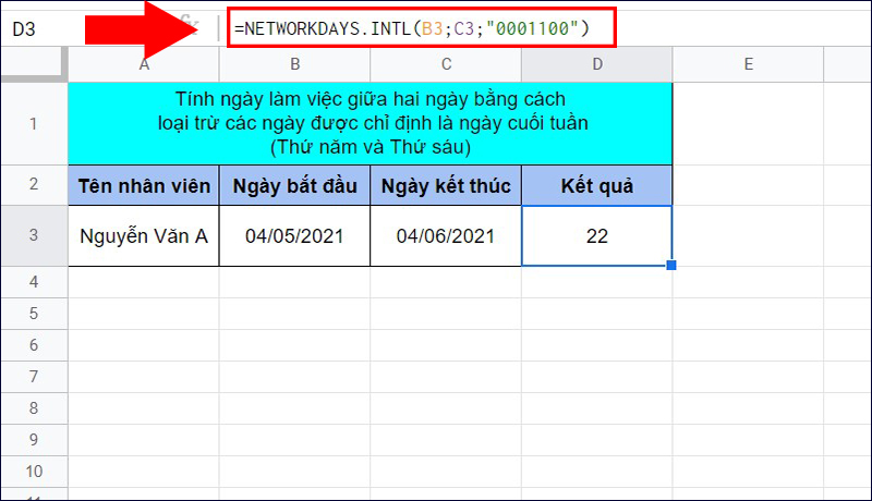 Cách sử dụng hàm NETWORKDAYS.INTL trong Google Sheet