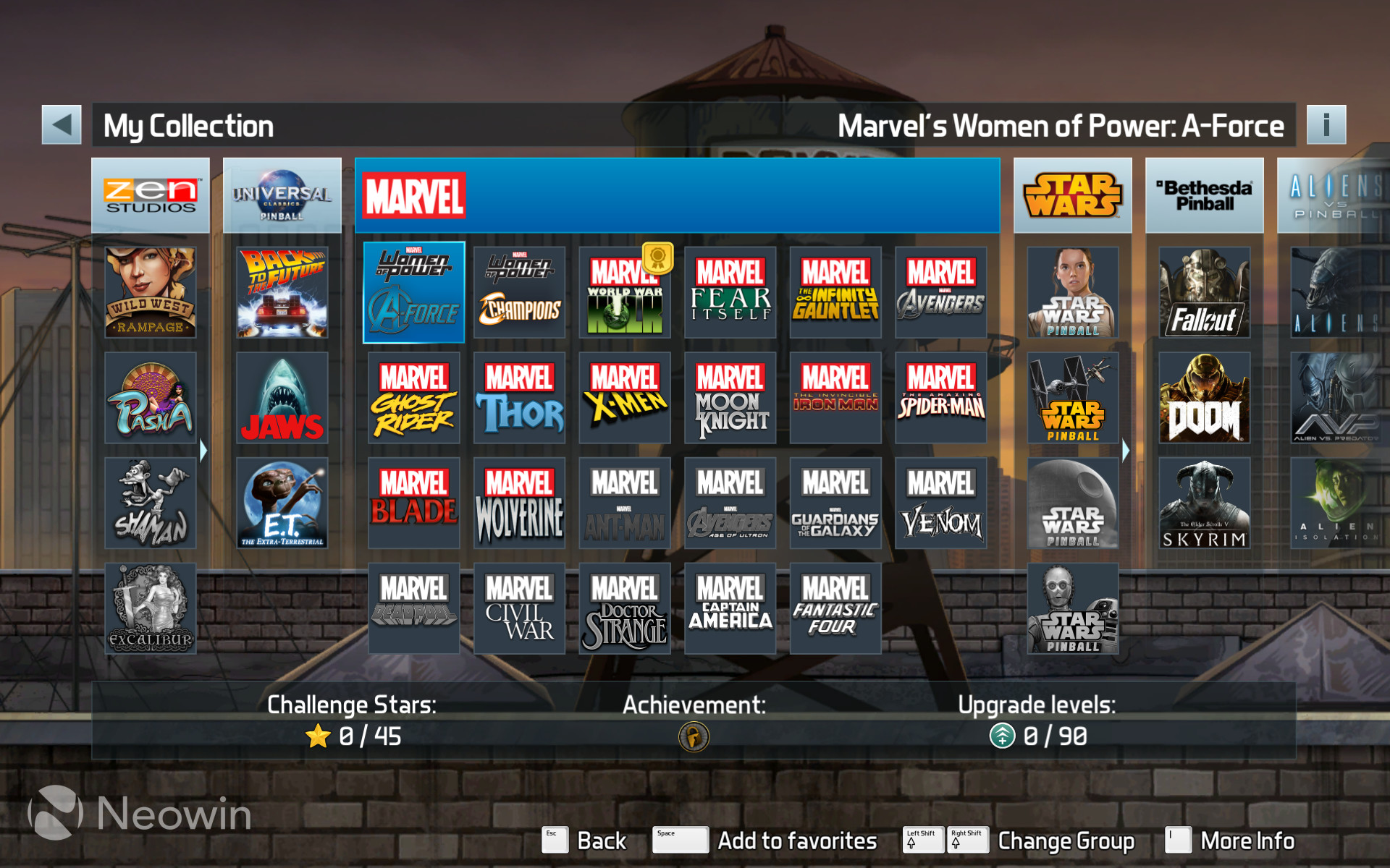 Ba bản gốc Zen mới được thiết lập để phát hành khi ra mắt. Cùng với các cổng của hai bảng Chiến tranh giữa các vì sao từ Pinball VR và 33 bảng danh mục.