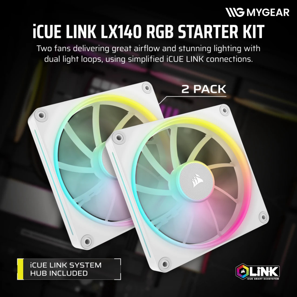 Bộ 2 Fancase Corsair iCUE LINK LX140 RGB 140mm PWM Starter Kit White