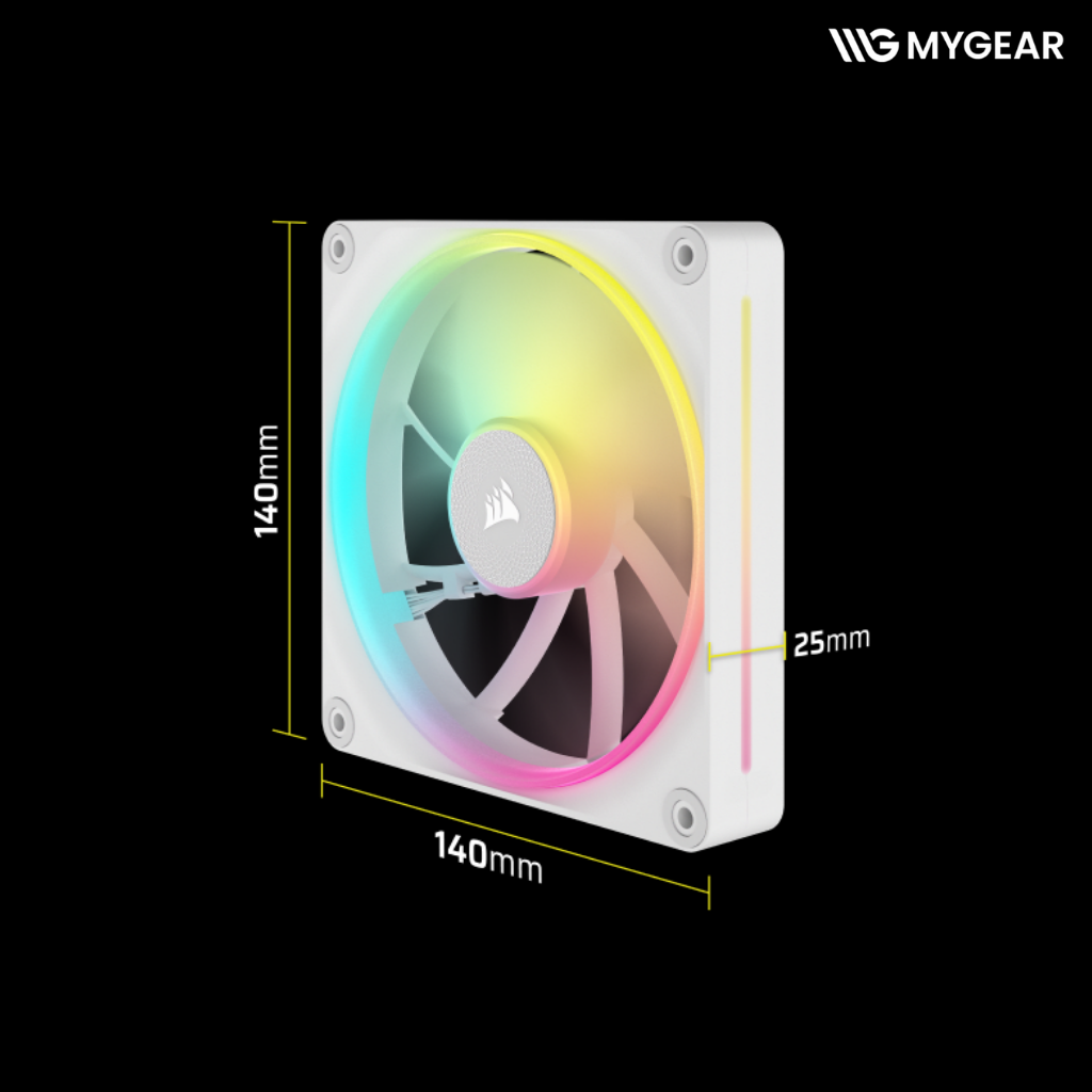 Corsair iCUE LINK LX140 White là lựa chọn tuyệt vời cho những ai muốn kết hợp hiệu năng làm mát mạnh mẽ và hiệu ứng ánh sáng RGB nổi bật. Quạt PWM Corsair LX140 trắng với tốc độ tối đa 2000 RPM và áp suất tĩnh cao giúp khí nóng được đẩy ra hiệu quả, duy trì nhiệt độ tối ưu cho CPU, card đồ họa và các linh kiện khác. Hệ thống LED Dual Light Loops mang đến hiệu ứng ánh sáng sống động, đặc biệt phù hợp với các build tone sáng.