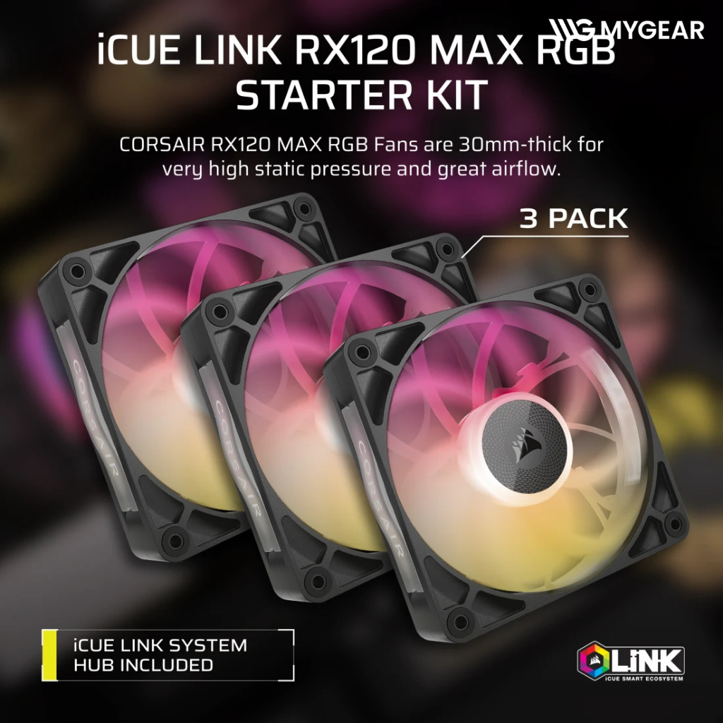 Bộ 3 Fancase Corsair iCUE LINK RX120 MAX RGB 120mm PWM Thick Fans Starter Kit