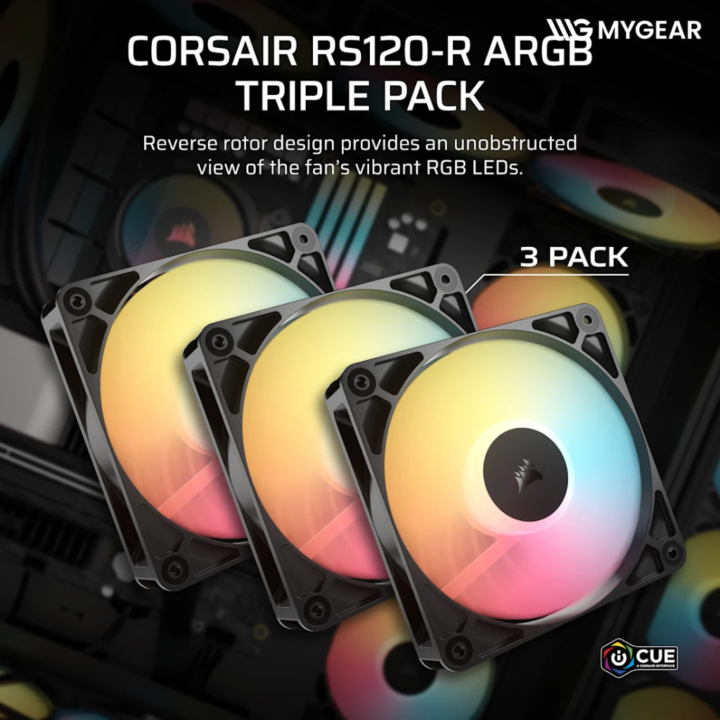 Bộ 3 Fancase Corsair RS120-R ARGB 120mm PWM Reverse Fans Black