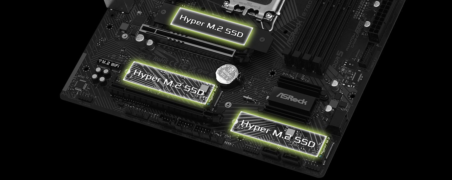 Bo mạch chủ Asrock B760M Lightning khác So với khe cắm PCIe kiểu DIP thông thường, khe cắm PCIe kiểu SMT cải thiện luồng tín hiệu và tối đa hóa độ ổn định ở tốc độ cao, một bước đột phá quan trọng để hỗ trợ đầy đủ tốc độ ánh sáng của tiêu chuẩn PCIe 5.0 mới nhất. PCI Express 5.0 mới nhất có khả năng thực hiện băng thông ngoạn mục 128GBps, sẵn sàng giải phóng toàn bộ tiềm năng của card đồ họa cao cấp trong tương lai.