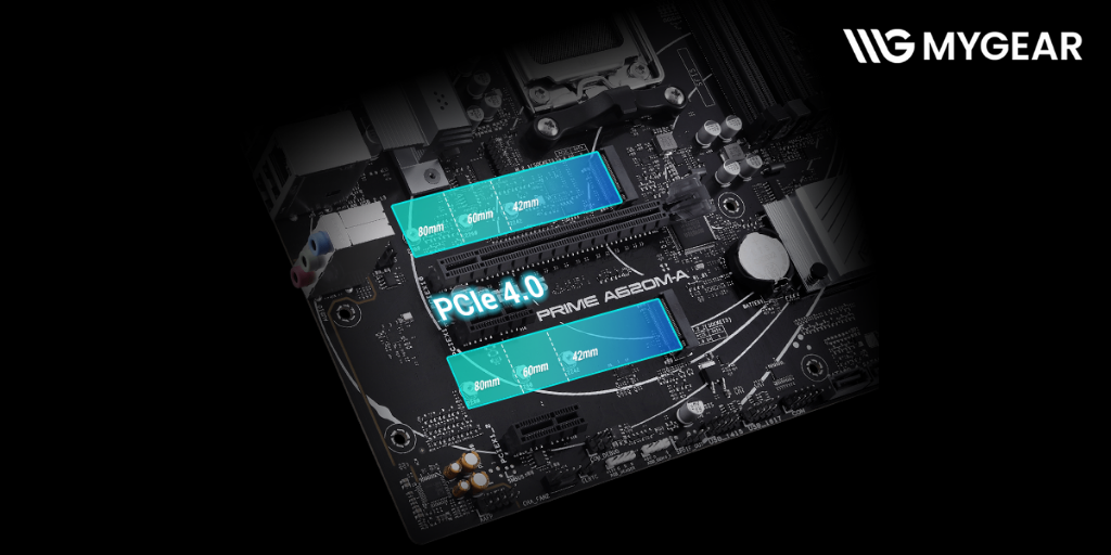 Với khe cắm PCIe 4.0, mainboard Asus Prime A620M-A mang đến băng thông tối đa cho card đồ họa và SSD NVMe tốc độ cao, giảm độ trễ, giúp chơi game mượt mà và xử lý công việc nhanh chóng hơn.