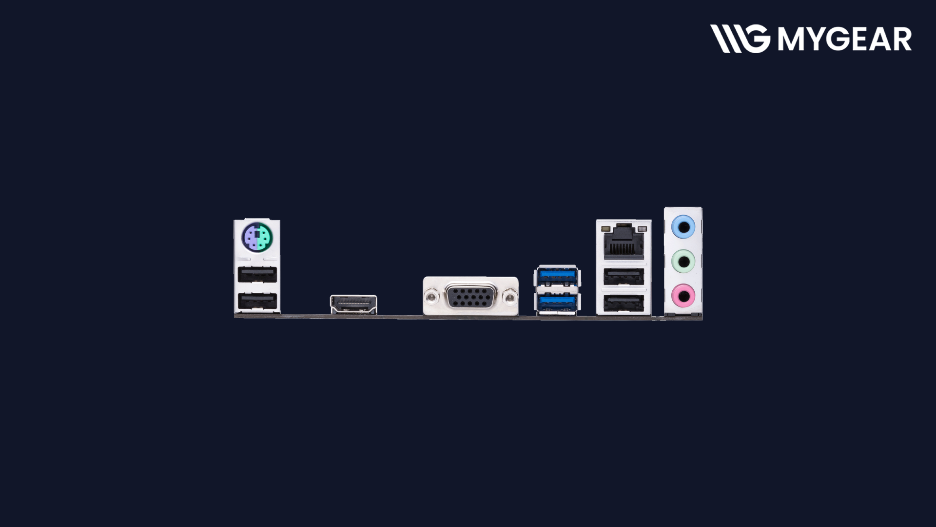 | Cổng kết nối (Back panel) | 2 x USB 3.2 Gen 1 ports (2 x Type-A) 4 x USB 2.0 ports (4 x Type-A) 1 x D-Sub port 1 x HDMI™ port 1 x Intel® I219-V 1Gb Ethernet port 3 x Audio jacks 1 x PS/2 Keyboard/Mouse combo port |