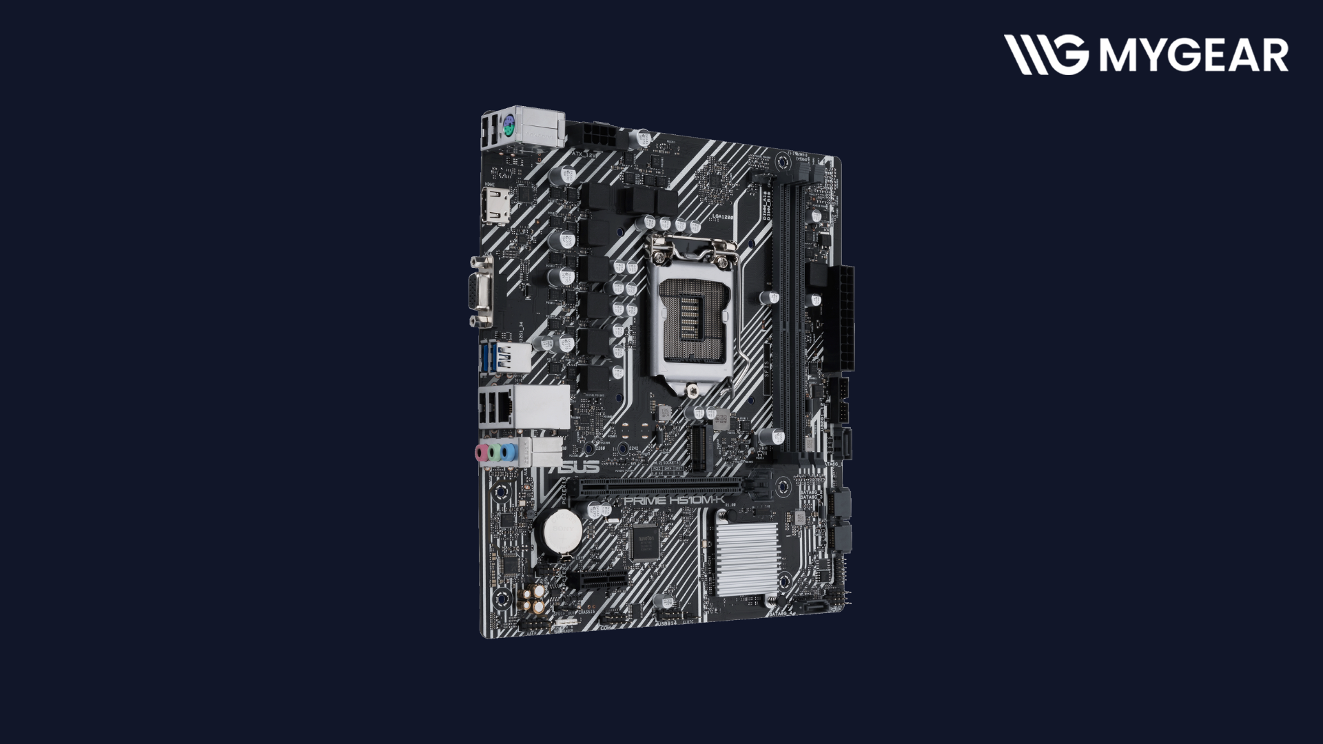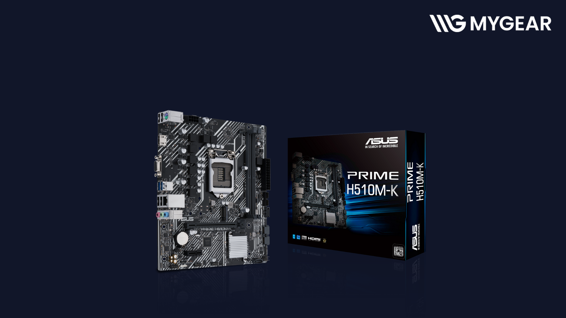 Bo mạch chủ Asus H510 hoạt động ổn định với các CPU Intel Core i3 10105, i5 10400, i5 11400, RAM DDR4 8GB 16GB, SSD NVMe M.2, card đồ họa RTX 3050, nguồn máy tính 500W–650W, case Micro ATX và nhiều linh kiện máy tính chính hãng khác đang có sẵn tại MYGEAR.