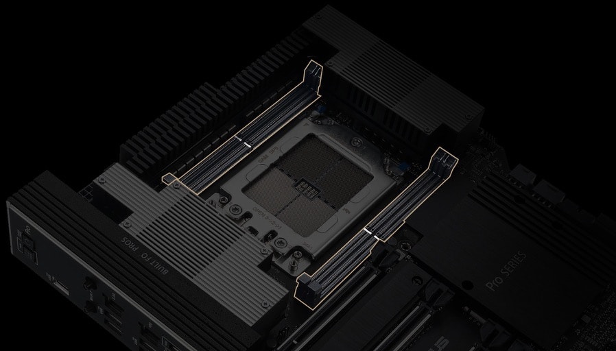 Với 4 khe DDR5 hỗ trợ ECC/Non-ECC, bo mạch chủ workstation ASUS Pro WS TRX50-SAGE WIFI cho phép lắp tối đa 1TB RAM, giúp hệ thống chạy mượt các phần mềm chuyên dụng như AutoCAD, Adobe After Effects, SolidWorks và nhiều hơn nữa. RAM DDR5 mang lại tốc độ truyền tải cao và băng thông vượt trội.