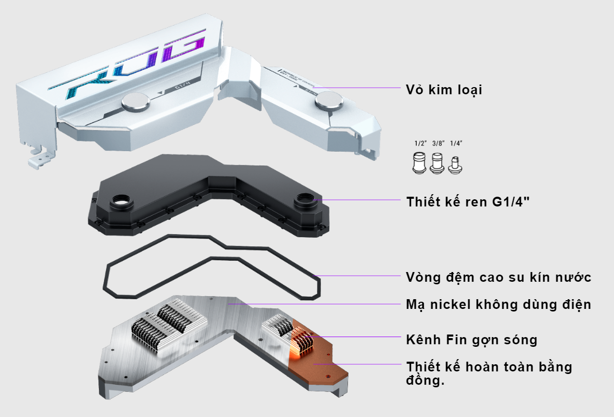 HYBRIDCHILLBộ giải pháp tản nhiệt HybridChill của ASUS tận dụng sự kết hợp giữa tản nhiệt thụ động và tản nhiệt chất lỏng để đảm bảo hoạt động VRM hiệu quả cao. Các kênh dẫn nước bằng đồng của nó chống ăn mòn và mang lại khả năng tản nhiệt tuyệt vời, trong khi các phụ kiện có ren của nó sử dụng tiêu chuẩn công nghiệp G1/4” để đảm bảo khả năng tương thích với nhiều thiết lập làm mát tùy chỉnh.
