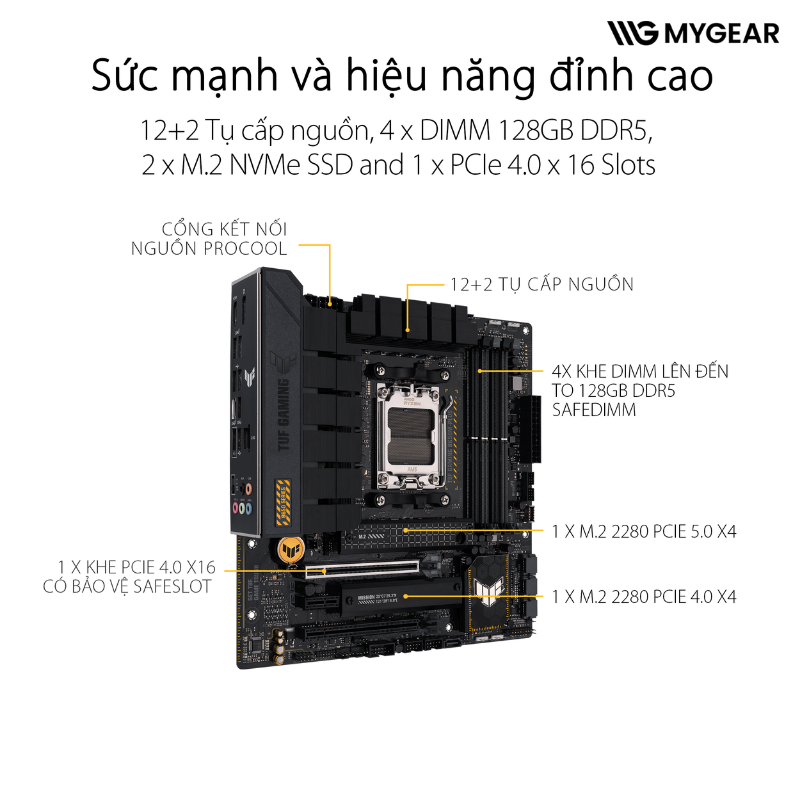 Mainboard Asus TUF GAMING B650M-PLUS DDR5 là lựa chọn lý tưởng cho game thủ và người dùng cần một mainboard AMD mạnh mẽ, bền bỉ và nhiều tính năng mở rộng.