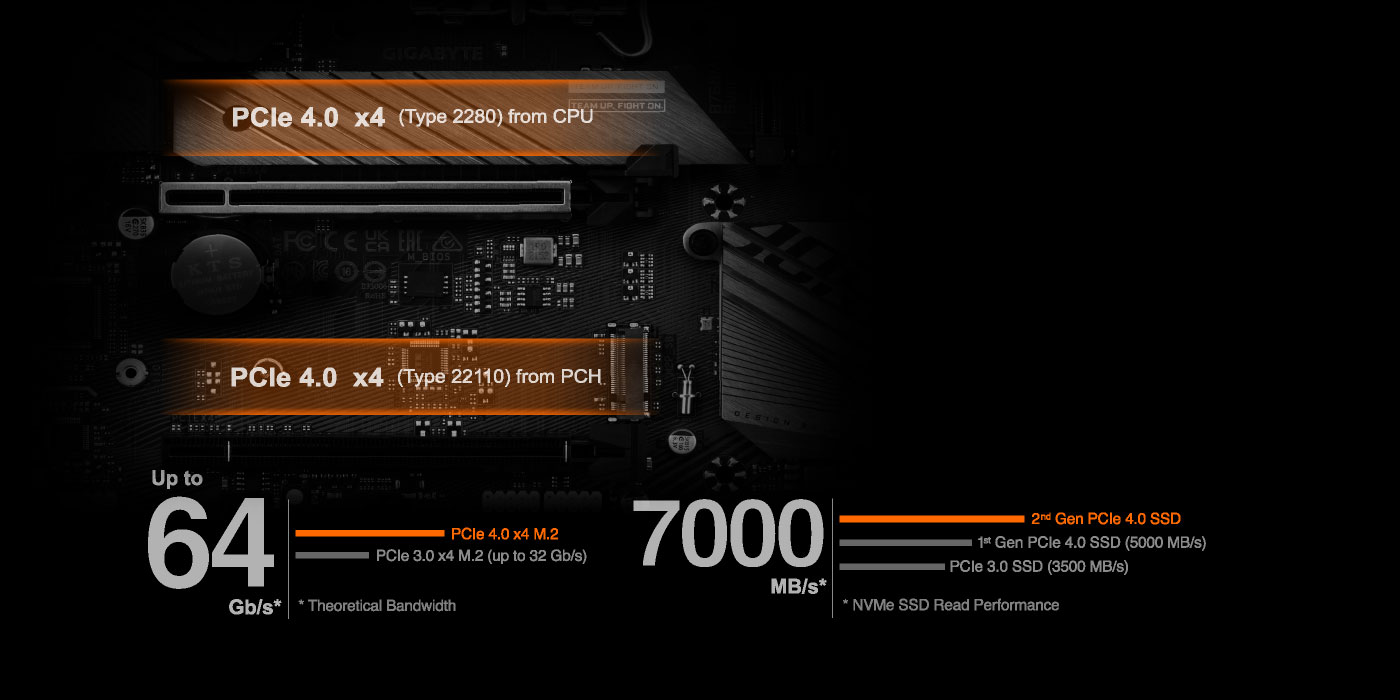 Với 2 khe M.2 PCIe Gen4 x4 và 4 cổng SATA 6Gb/s, bo mạch chủ DDR5 Gigabyte cho phép bạn thiết lập hệ thống lưu trữ nhanh và hiệu quả, từ SSD tốc độ cao để khởi động nhanh đến ổ HDD lưu trữ dữ liệu lớn.