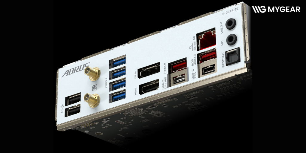 Một trong những điểm sáng của Gigabyte AORUS PRO X WiFi7 là khả năng kết nối không dây thế hệ mới WiFi 7, mang đến tốc độ truyền tải lên đến 5.8Gbps, độ trễ thấp cực kỳ quan trọng cho game thủ và streamer. Ngoài ra, cổng mạng 5GbE LAN mang đến sự ổn định tối đa khi chơi game online hoặc truyền dữ liệu lớn.