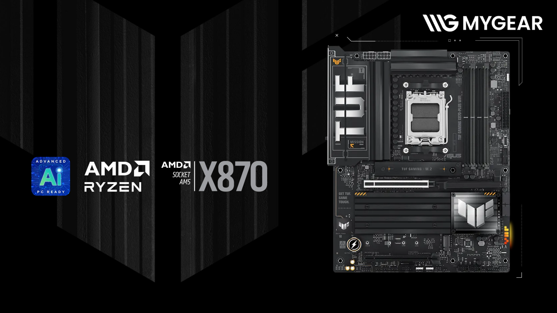 Hiện tại, mainboard ASUS TUF GAMING X870-PLUS WIFI chính hãng đang có mặt tại MYGEAR. Khi mua tại bo mạch chủ AMD, khách hàng có thể kết hợp cùng CPU AMD Ryzen 9000/8000/7000, RAM DDR5 bus cao, SSD PCIe 5.0, card đồ họa RTX hoặc Radeon thế hệ mới và PSU công suất lớn để xây dựng cấu hình hoàn chỉnh.