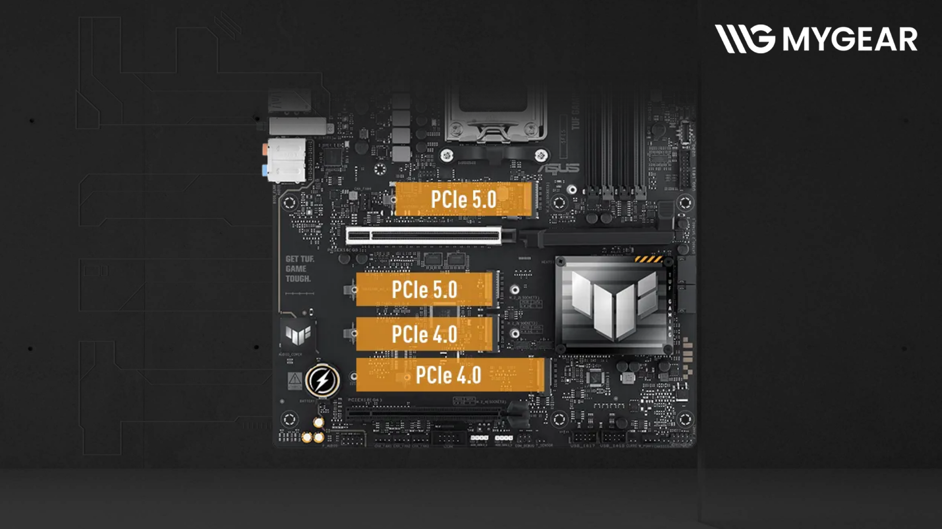 ASUS TUF GAMING X870-PLUS sử dụng socket AM5 và chipset AMD X870, hỗ trợ AMD Ryzen™ 9000, 8000 và 7000 Series. Điều này đảm bảo khả năng tương thích lâu dài và tối ưu hiệu năng cho cả gaming lẫn công việc sáng tạo nội dung. Là một mainboard AMD X870 PCIe 5.0, sản phẩm sẵn sàng khai thác tối đa băng thông của GPU và SSD thế hệ mới.