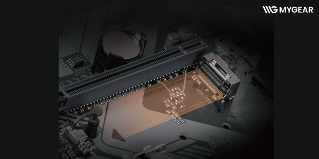 Bo mạch chủ Gigabyte B760M trang bị 1 khe PCIe 4.0 x16 cho card đồ họa rời, đảm bảo hiệu năng tối đa khi kết hợp cùng các GPU RTX 40 series hoặc RX 7000 series. Ngoài ra, khe M.2 NVMe Gen4 giúp SSD đạt tốc độ đọc/ghi cực nhanh, giảm thiểu thời gian load game.