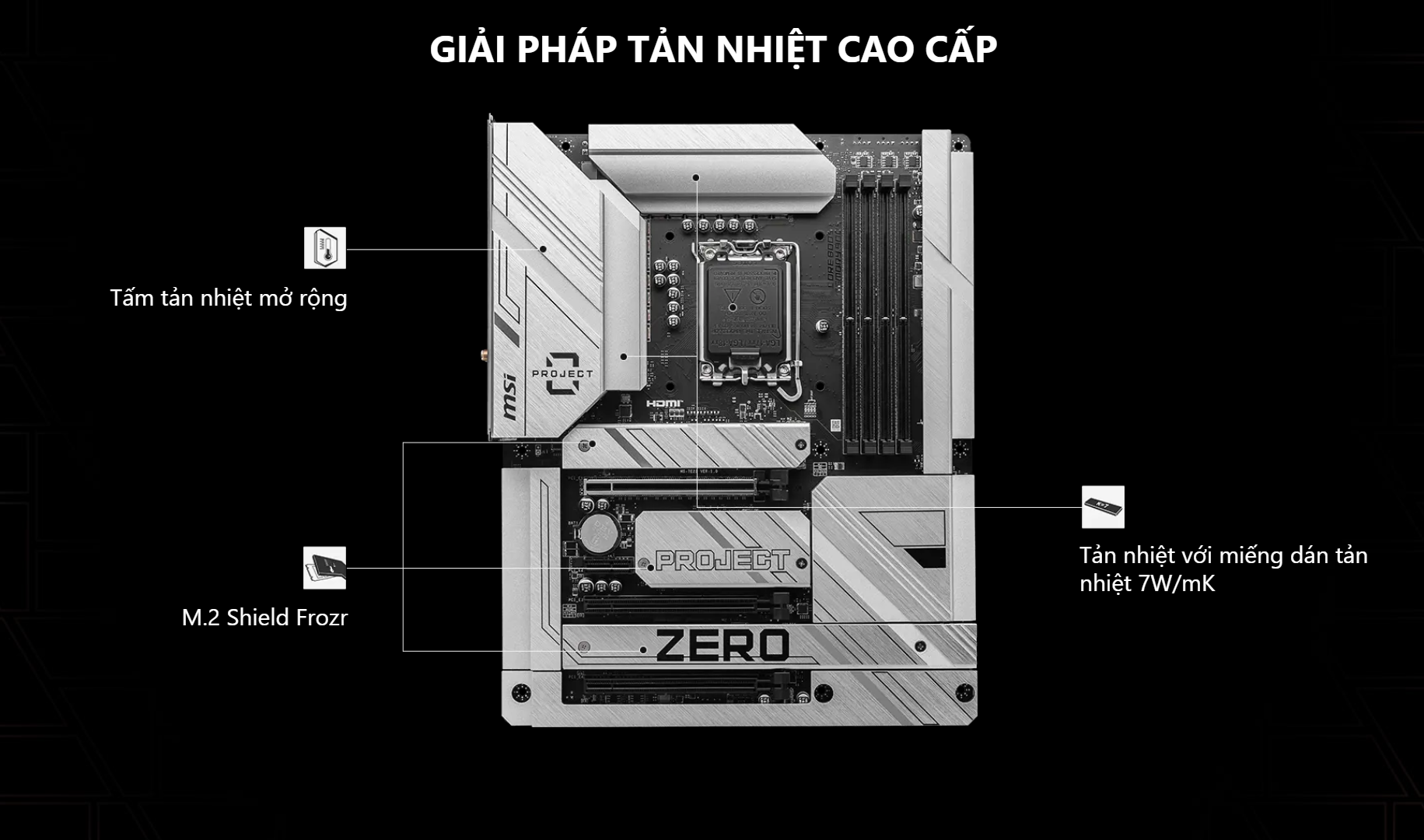 3. Tản nhiệt hạng nặng cho VRM Tản nhiệt cho VRM bao phủ phần trên của MOS và giúp tản nhiệt.