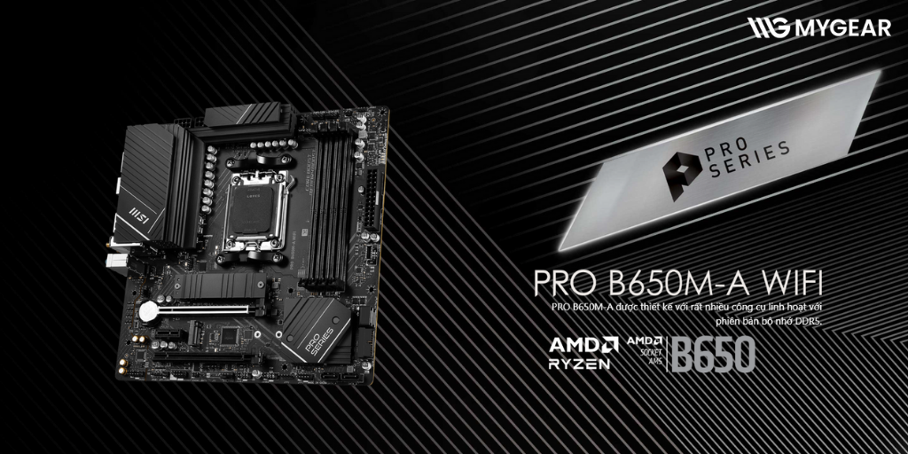 Nếu bạn đang tìm nơi mua MSI PRO B650M-A WIFI DDR5 chính hãng giá tốt thì hãy đến MYGEAR, cửa hàng linh kiện PC gaming uy tín, chuyên cung cấp bo mạch chủ AMD, CPU, card màn hình và nhiều phụ kiện chính hãng. MYGEAR cam kết bảo hành minh bạch, giao hàng nhanh và hỗ trợ kỹ thuật tận tâm.