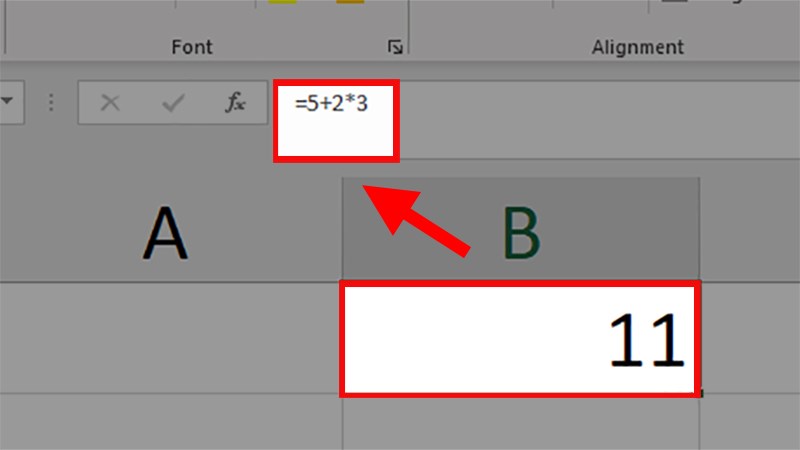 Ví dụ: Với công thức sau = (2*3)+5, Excel sẽ tính toán phép nhân trước đó phép cộng, do đó kết quả là 11.