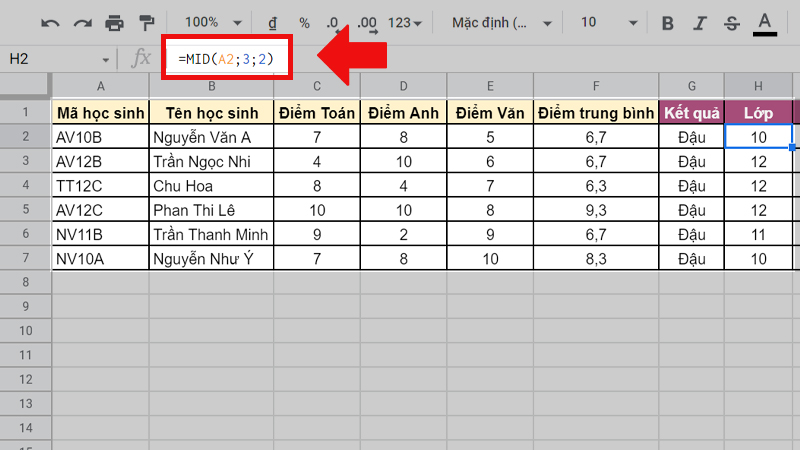 Hướng dẫn cách sử dụng hàm MID trong Google Sheet đơn giản