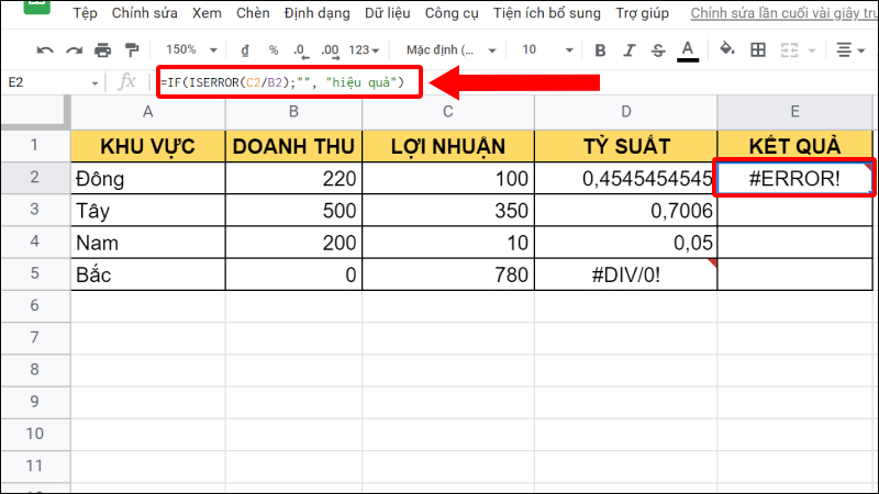 Hướng dẫn cách sử dụng hàm ISERROR trong Google Sheet đơn giản