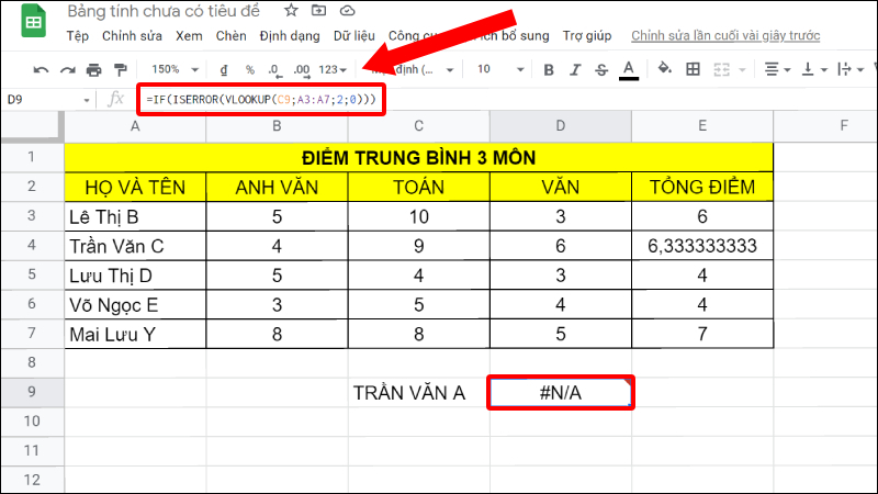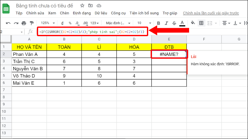 Hướng dẫn cách kết hợp hàm IF và hàm ISERROR trong Google Sheet đơn giản