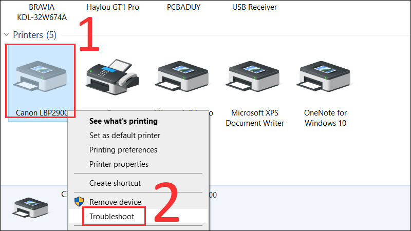 Nhấn chuột phải vào máy in của bạn, chọn Troubleshoot