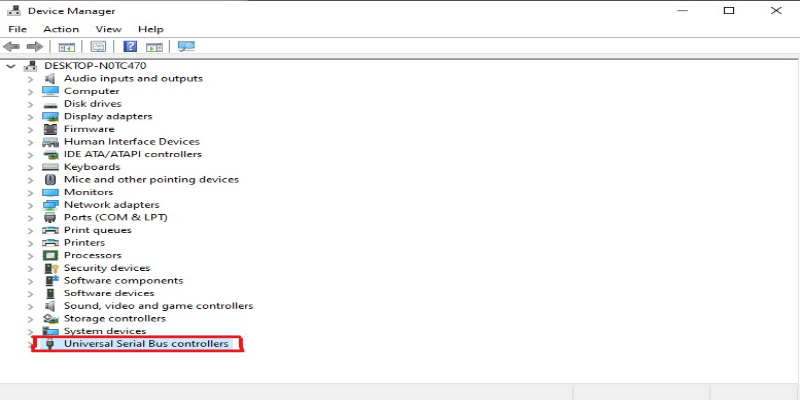 - Mở Device Manager. Sau đó chọn Universal Serial Bus controllers.